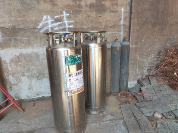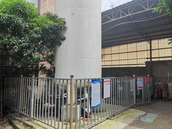 浙江超億消防裝備有限公司老廠區在干粉滅火器筒體焊接生產加工中涉及使用二氧化碳[壓縮的]和氬[壓縮的],共設置110m³液氬儲罐和4175L二氧化碳焊接絕熱氣瓶,分別經空溫汽化器氣化和自動混配后通過無縫鋼管管道至車間焊接點。另外在生產車間干粉滅火器筒體補焊,設備檢維修等涉及使用氬氣氣瓶、氧氣氣瓶和乙炔氣瓶,屬于危險化學品使用單位,根據《危險化學品安全使用許可適用行業目錄》辨識可知,該企業不需要辦理危險化學品安全使用許可證。