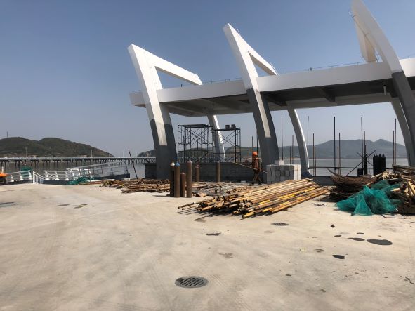 岱山縣燕窩山陸島交通碼頭工程水域部分(交通碼頭(水工部分)及防波堤工程)設計單位為中交第三航務工程勘察設計院有限公司,施工單位為中交第三航務工程局有限公司,監理單位為舟山市海通水運工程咨詢監理有限責任公司。該工程于2019年9月17日開工,2022年3月31日完工。