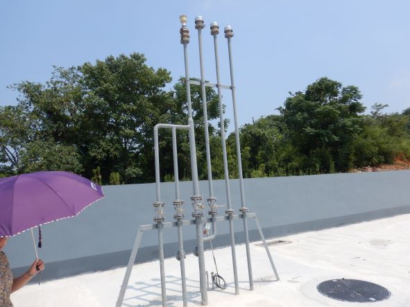 站區(qū)加油罩棚下設(shè)4座加油島和4臺(tái)雙油品四槍潛油泵式稅控加油機(jī)。埋地油罐區(qū)設(shè)5只埋地FF雙層玻璃纖維增強(qiáng)塑料油罐(車道罐),其中40m³的FF雙層復(fù)合汽油罐2只(儲(chǔ)存92#汽油),30m³FF雙層復(fù)合汽油罐1只(儲(chǔ)存95#汽油),40m³的雙層復(fù)合柴油罐2只(儲(chǔ)存0#柴油),折算后油罐總?cè)莘e150m³(柴油罐容積折半計(jì)入),根據(jù)《汽車加油加氣加氫站技術(shù)標(biāo)準(zhǔn)》GB50156-2021規(guī)定的等級(jí)劃分,該加油站為二級(jí)加油站。