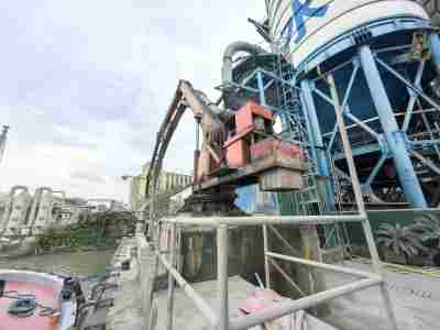 該碼頭3#泊位主要裝卸貨種為粉煤灰和礦粉等散貨,設(shè)置一臺負(fù)壓卸船機,采用負(fù)壓卸船機將粉煤灰及礦粉直接打入筒倉,碼頭前沿作業(yè)帶為10m,并在作業(yè)帶后方設(shè)置6個筒倉,作為碼頭中轉(zhuǎn)區(qū)。